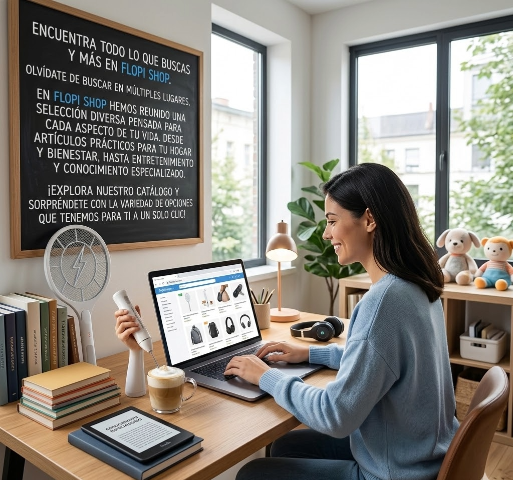 Olvídate de buscar en múltiples lugares. En FlopiShop hemos reunido una selección diversa pensada para cada aspecto de tu vida. Desde artículos prácticos para tu hogar y bienestar, hasta entretenimiento y conocimiento especializado. ¡Explora nuestro catálogo y sorpréndete con la variedad de opciones que tenemos para ti a un solo clic!